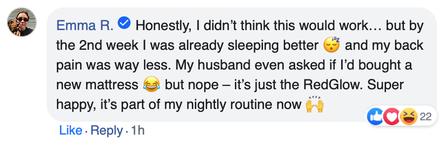 "After years of restless nights and constant back pain i found -RedGlow! it has been the best investment I’ve made for my health." – Rebecca, 51