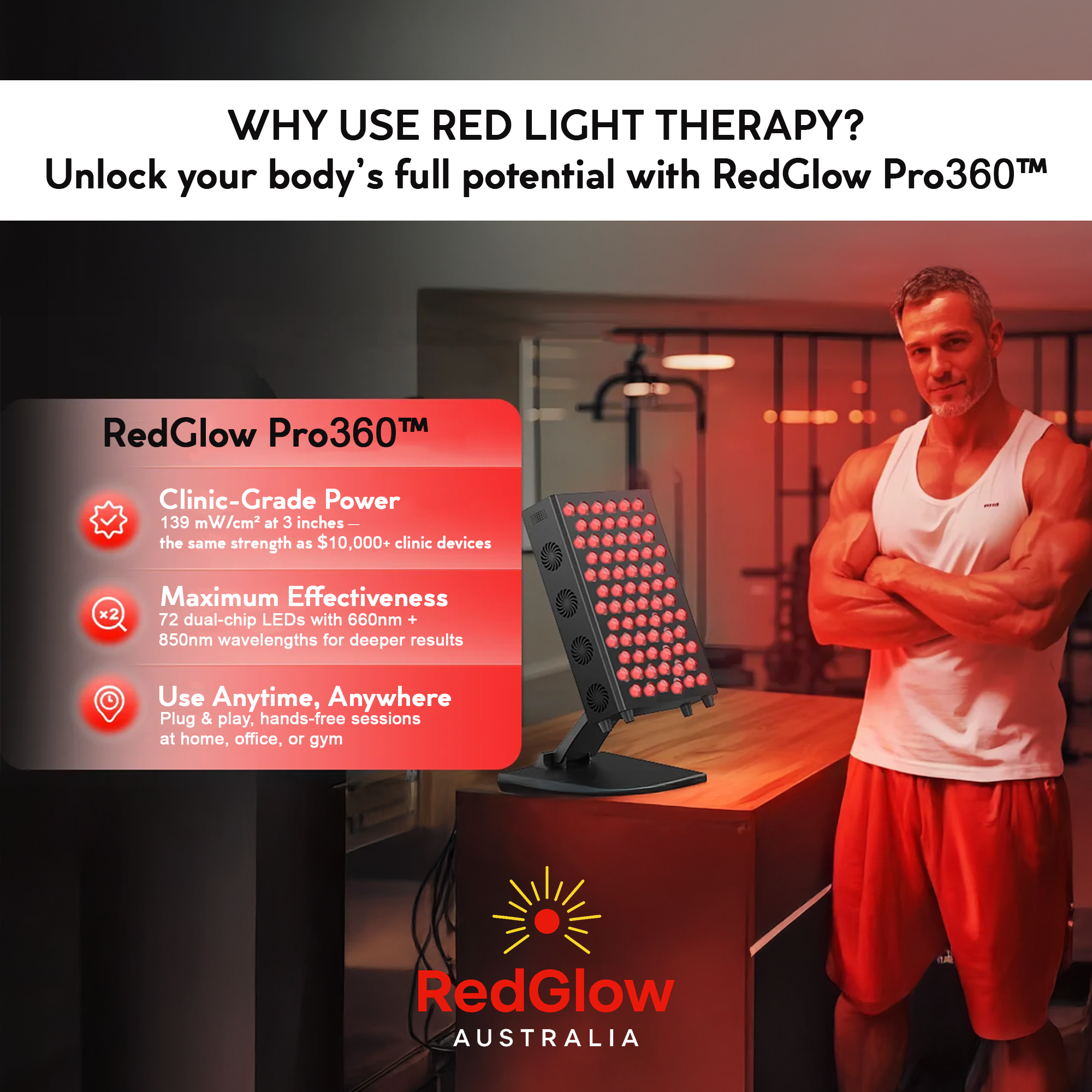 RedGlow Pro360™ delivers clinic-grade red light therapy – no pills, no appointments, just natural healing at home.
