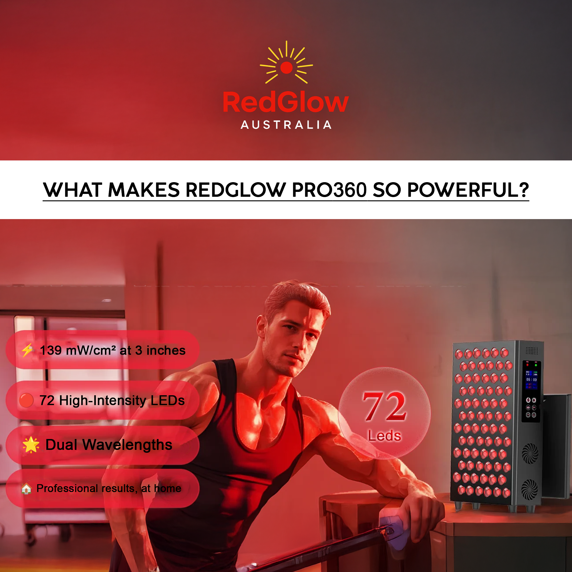 RedGlow Pro360™ delivers clinic-grade red light therapy – no pills, no appointments, just natural healing at home.